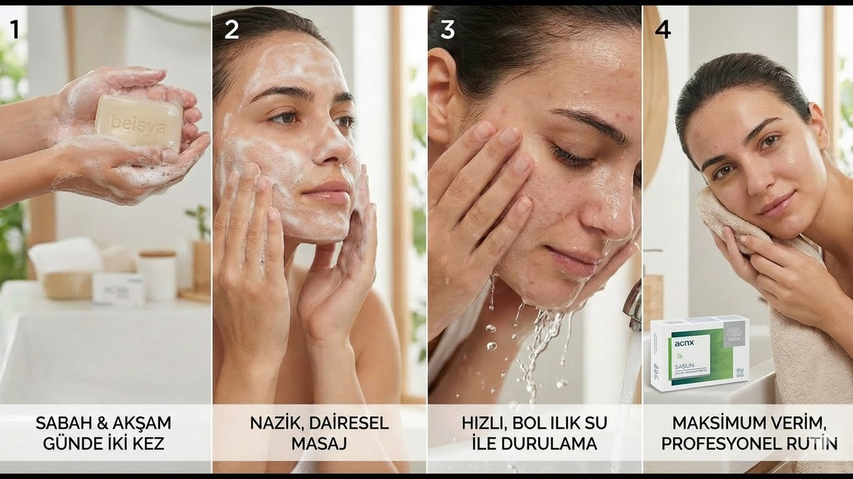Yağlı ve akneye meyilli bir ciltte en önemli kural, temizleme işleminin bir ritüele dönüşmesidir. ACNX Sabun’dan en iyi sonucu almak için şu disiplini takip edin: