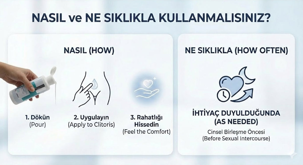 - Uygulama Şekli: Ürünü klitoris üzerine damlatarak uygulayabilirsiniz.