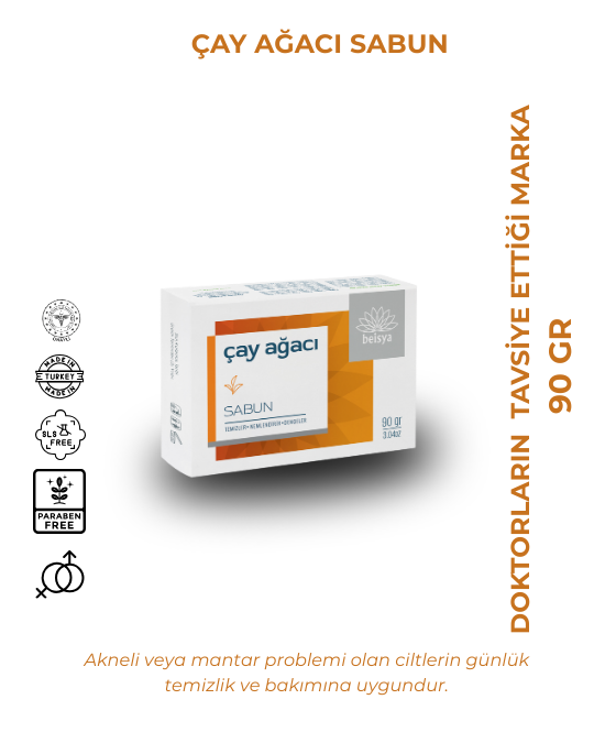 Beisya Çay Ağacı Sabunu, özellikle akneli veya mantar eğilimli ciltler için geliştirilmiş güçlü arındırıcı bir bakım sabunudur. Sabun formu sayesinde bol köpük oluşturarak cildin yüzeyindeki yağ, bakteri ve kiri fiziksel olarak uzaklaştırır. İçeriğindeki çay ağacı yağı, antibakteriyel ve antifungal etkisiyle gözeneklerin temizlenmesine, cilt yüzeyinin rahatlamasına ve sivilce oluşumunun kontrol altına alınmasına yardımcı olur.